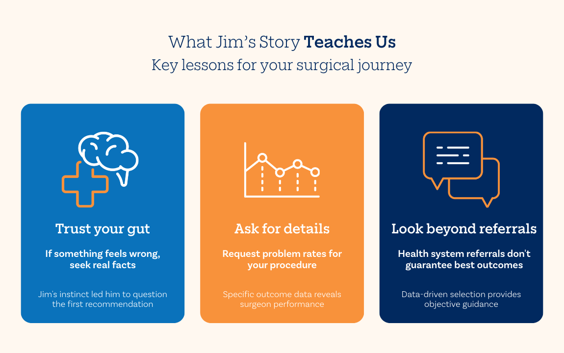 His story shows that fact-based surgeon selection turns anxiety into confidence. This leads to better outcomes and peace of mind.